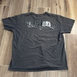 It shows a really cool graphic both on the front and back however has a little bleach stain on only front. However isn’t that much noticeable.